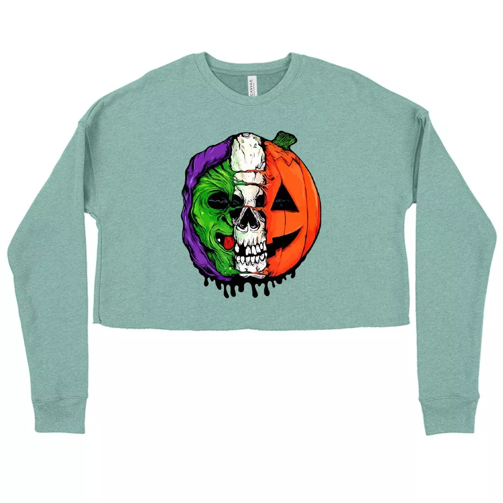 Women’s Cropped Fleece Halloween 3 Sweatshirt – Halloween 3 Silver Shamrock Masks Sweatshirt