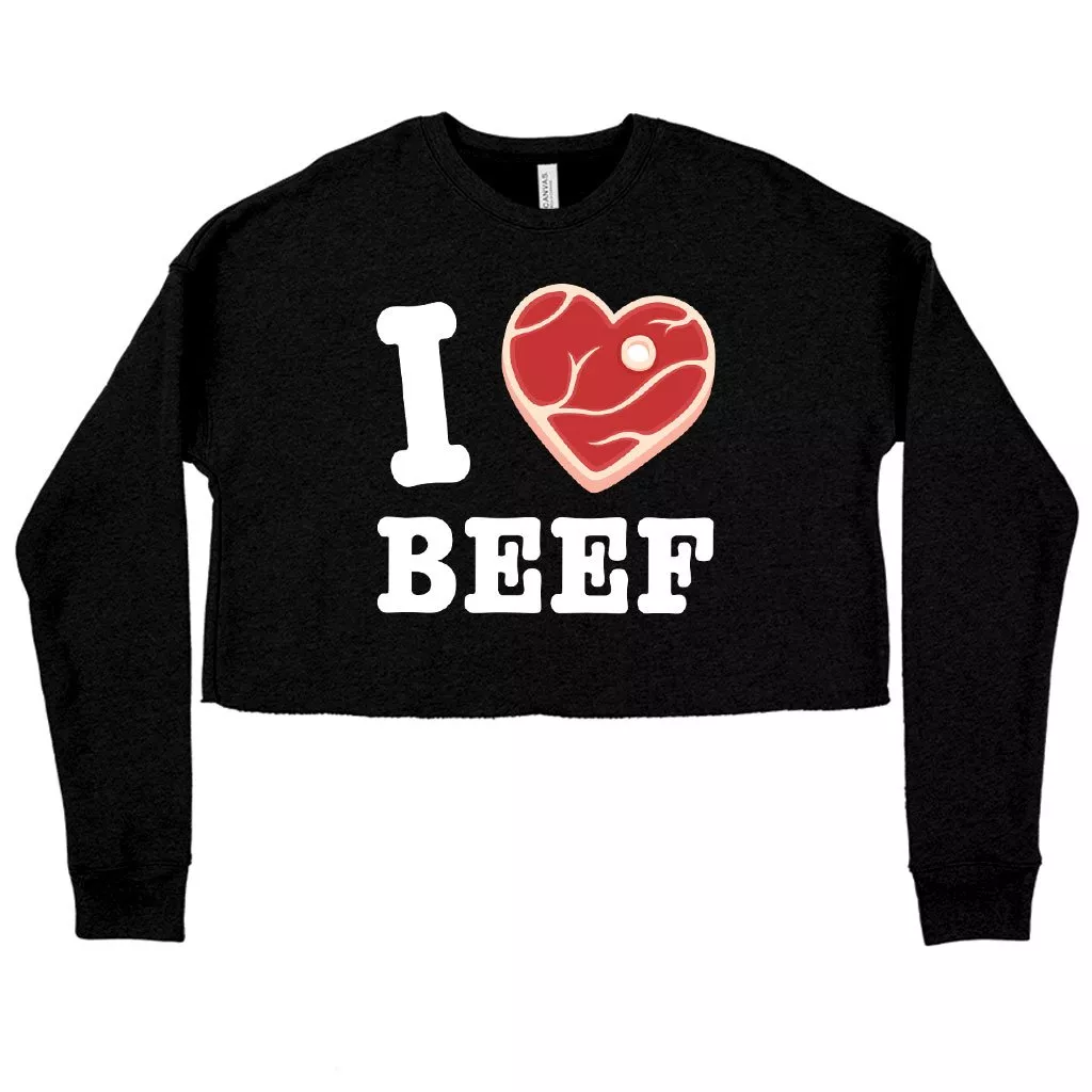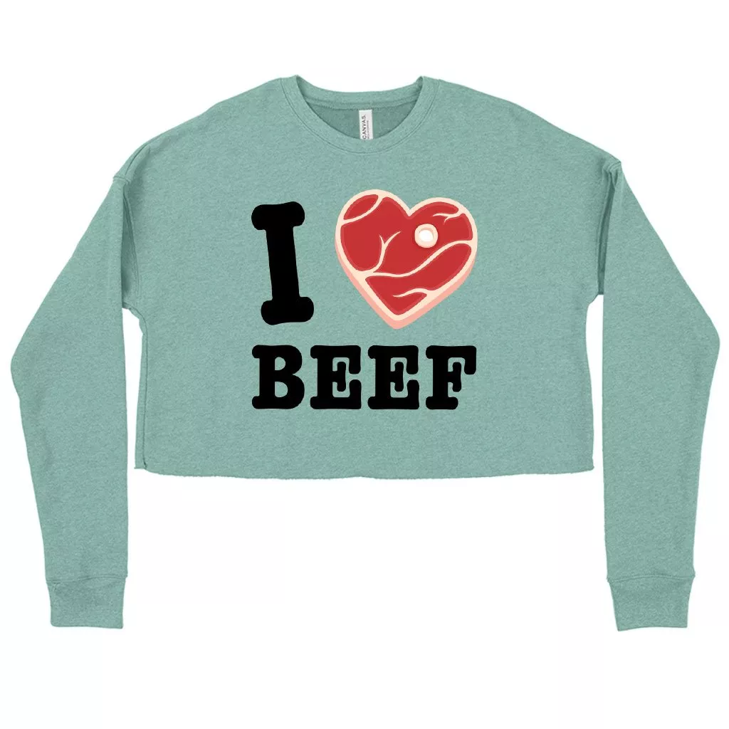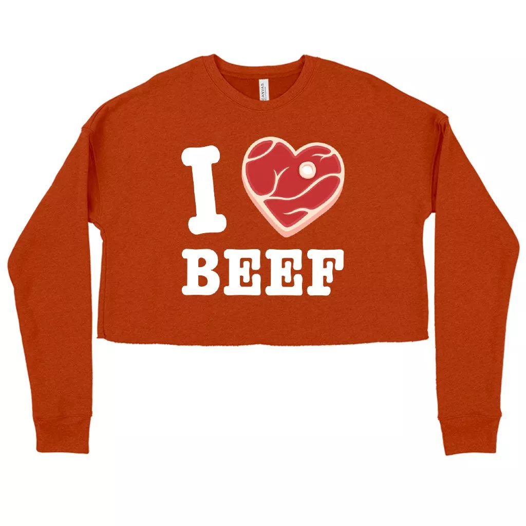 Women’s Cropped Fleece I Love Beef Sweatshirt