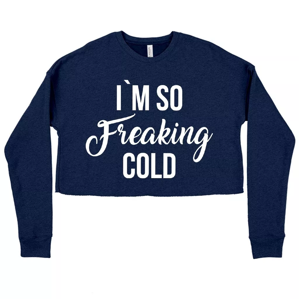 Women’s Cropped Fleece I’m So Freaking Cold Funny Humor Sweatshirt – Funny Letter Print Hoodies