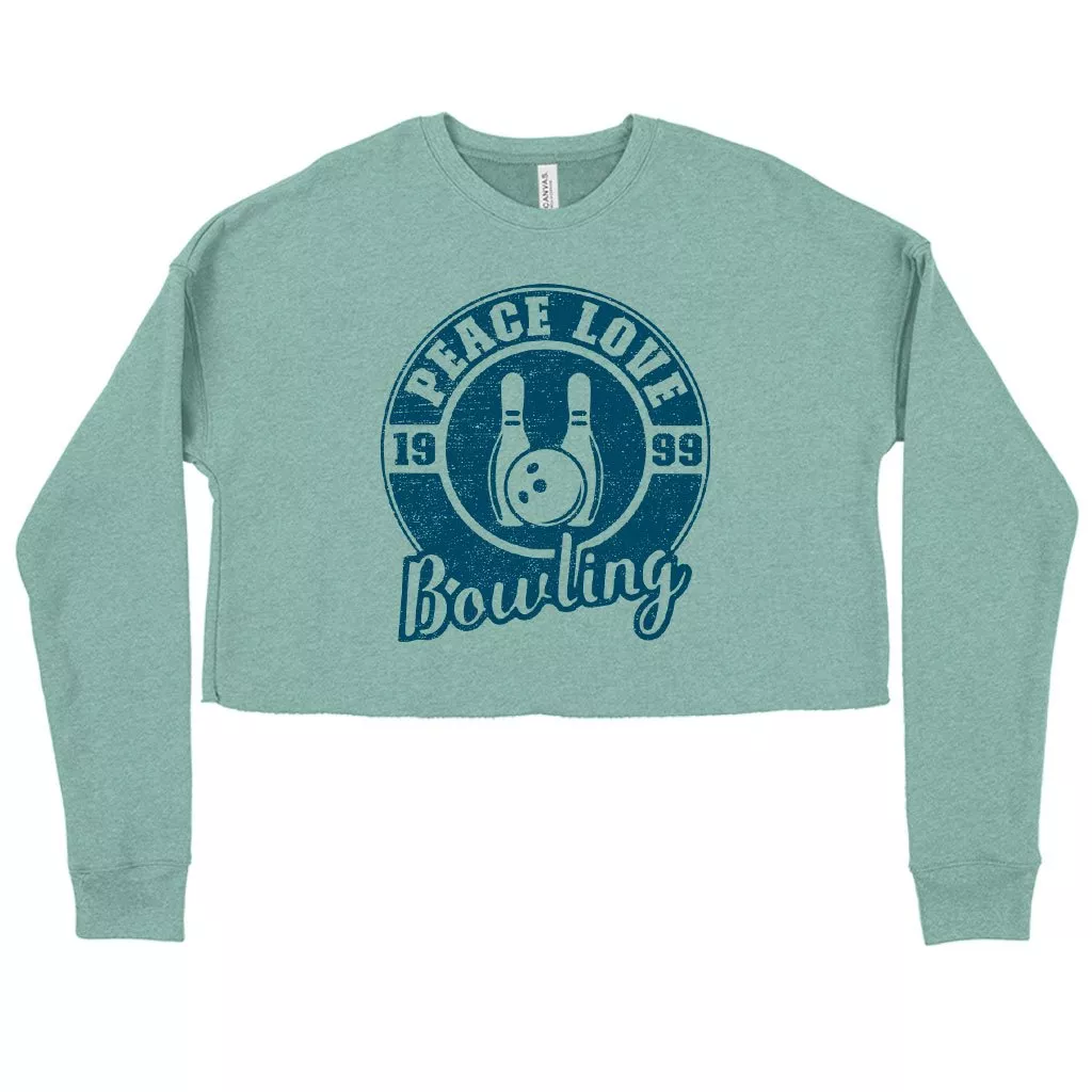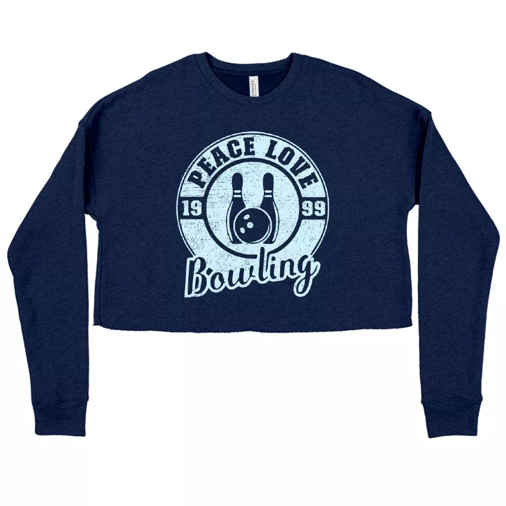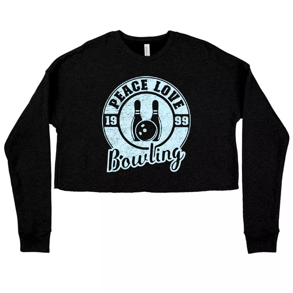 Women’s Cropped Fleece Peace Love Bowling Sweatshirt – Bowling Sweatshirt Design – Bowling Themed Sweatshirts