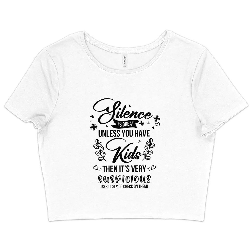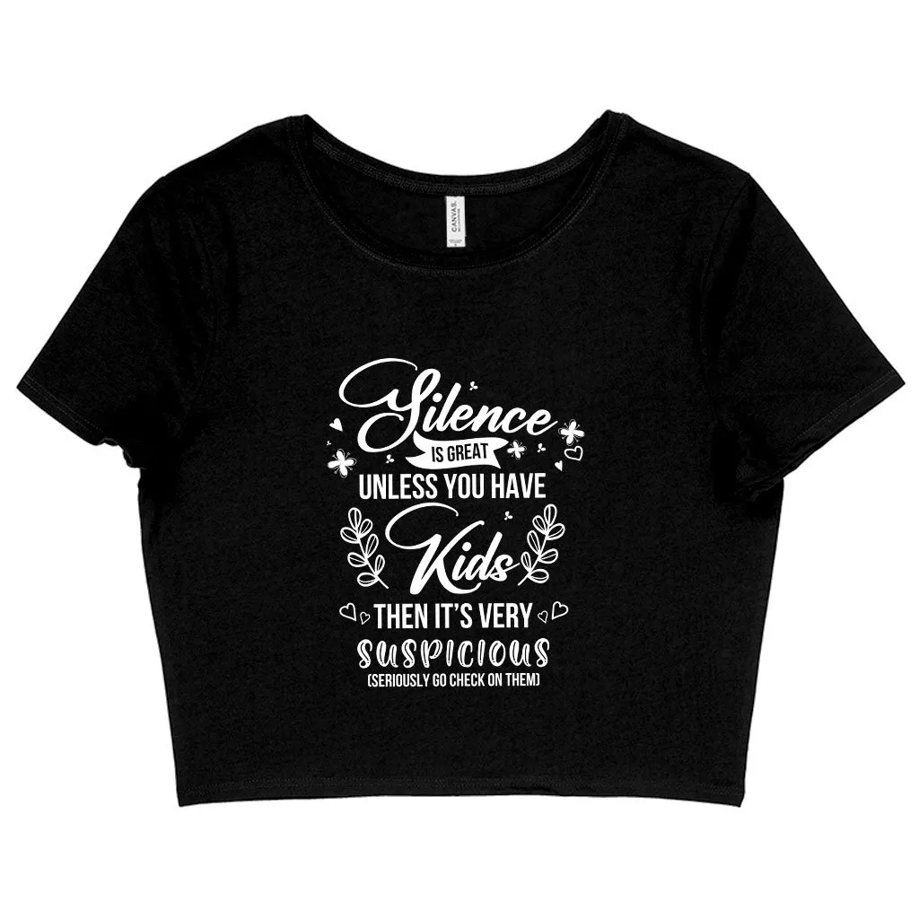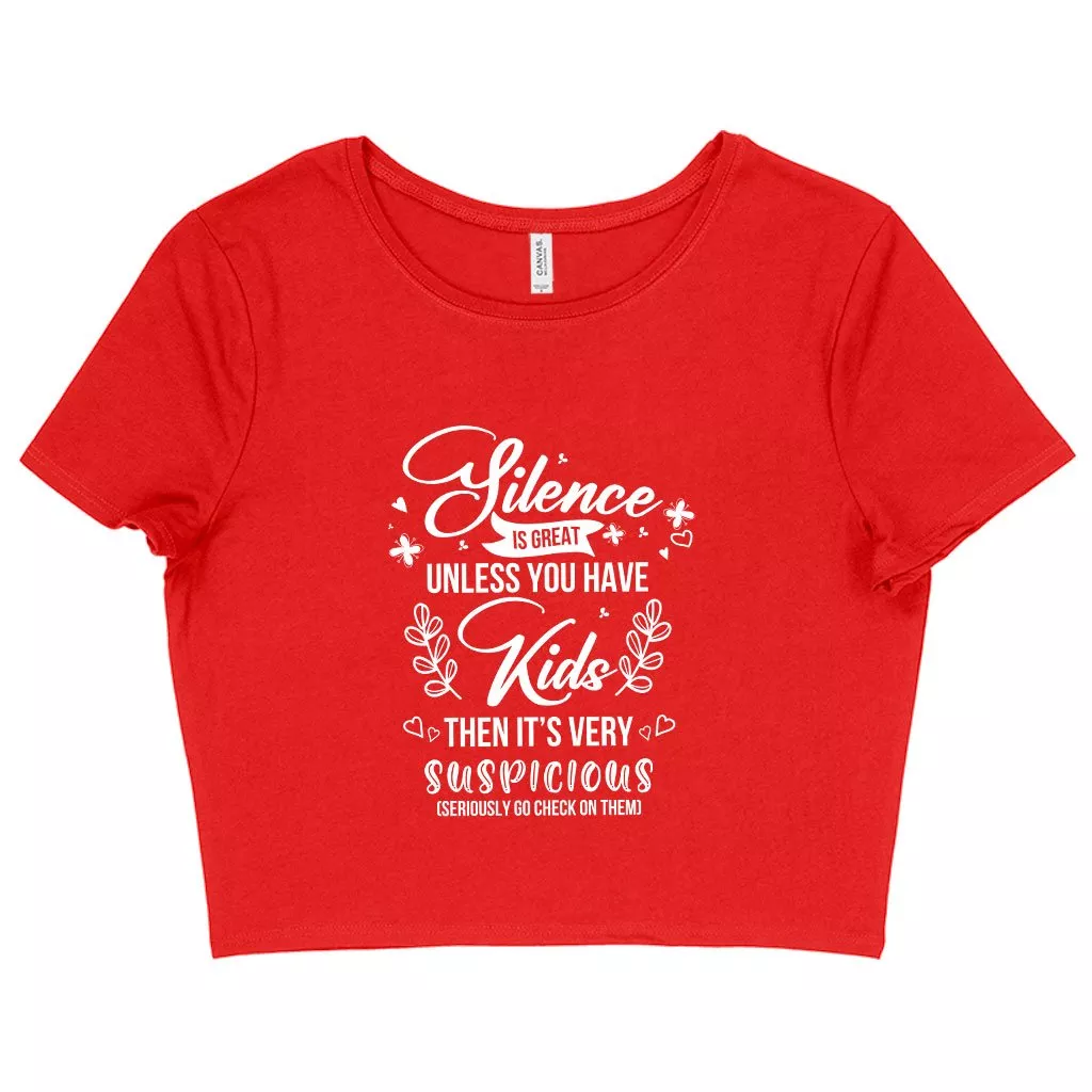 Women’s Cropped Silence Is Great T-Shirt – Funny Mom Sayings T-Shirts – Mother T-Shirt