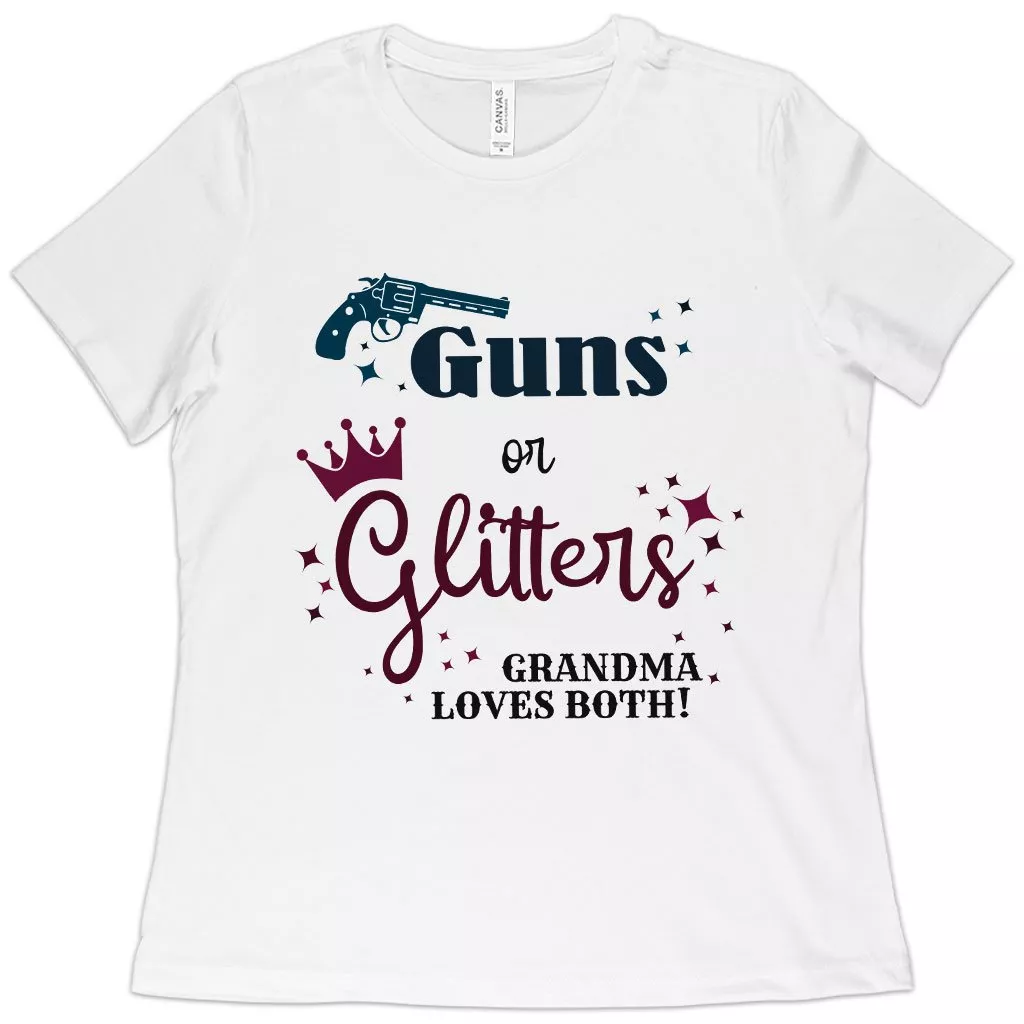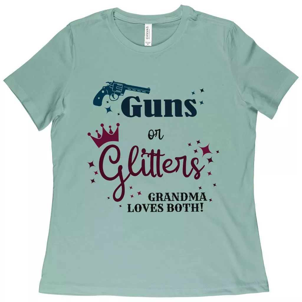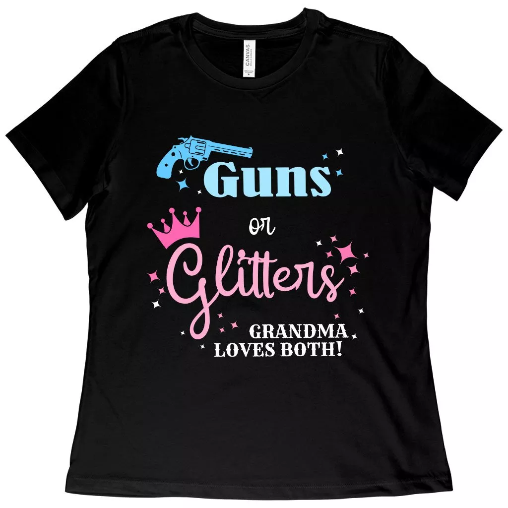 Women’s Guns or Glitters Grandma Loves Both T-Shirt – Gender Reveal T-Shirts for Grandparents – T-Shirts for Grandma