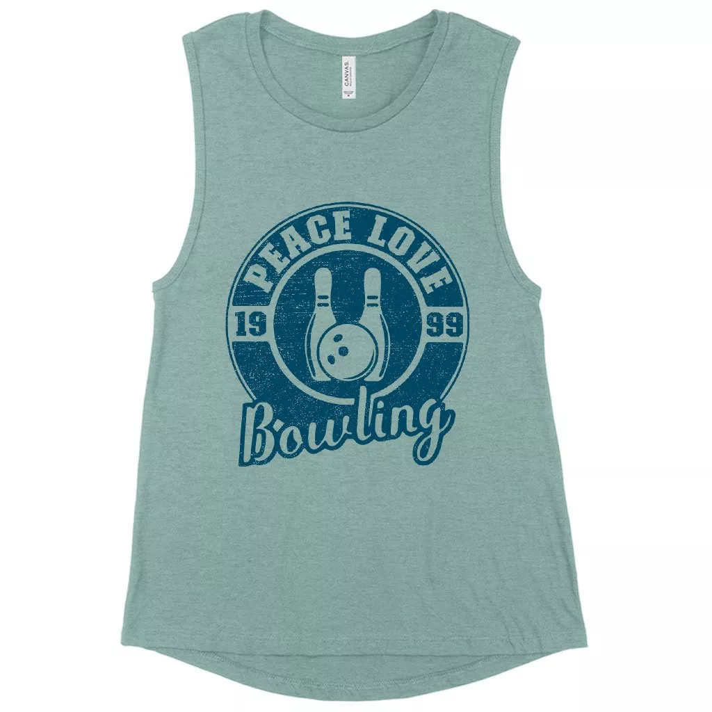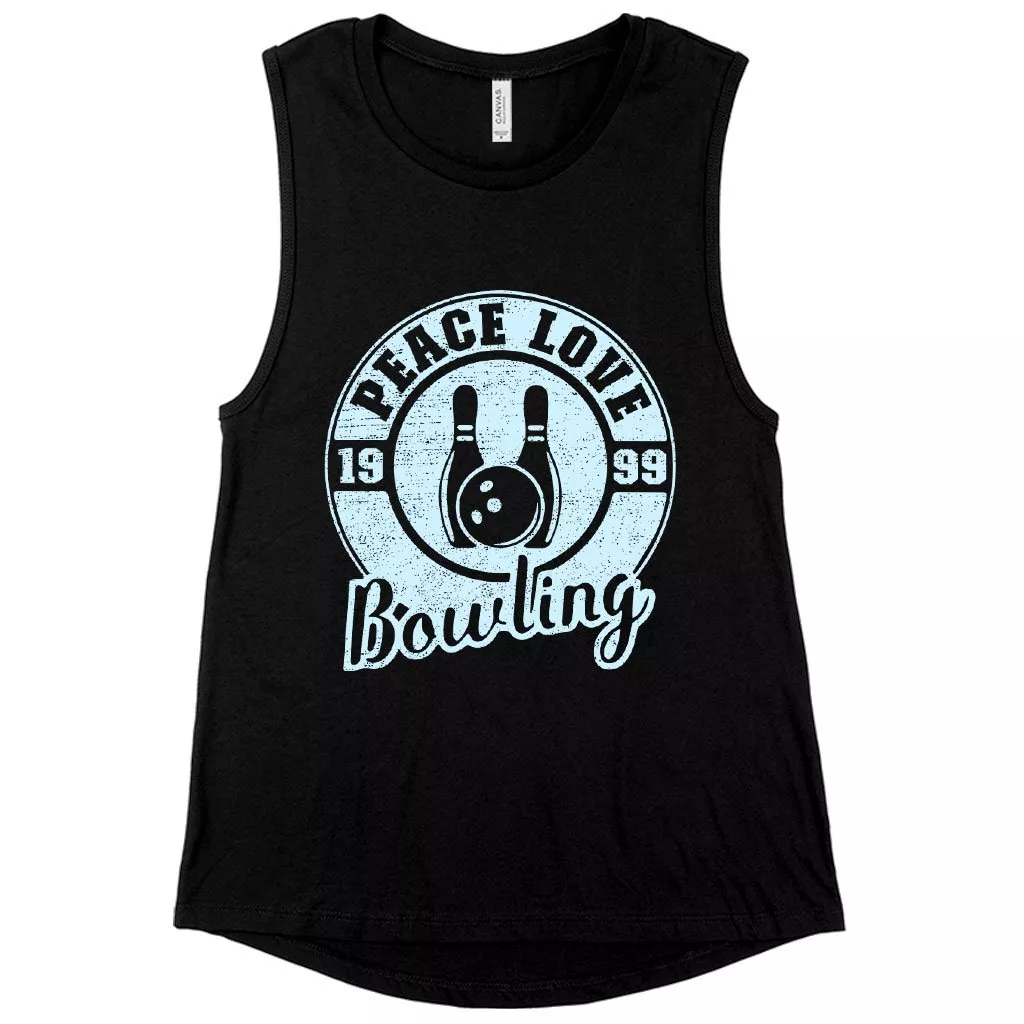 Women’s Muscle Peace Love Bowling Tank – Bowling Tank Design – Bowling Themed Tanks