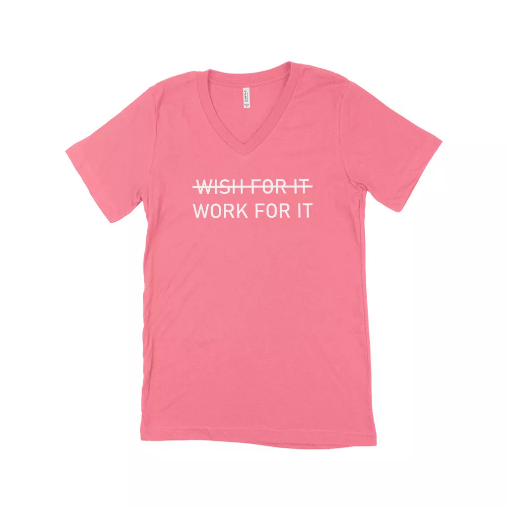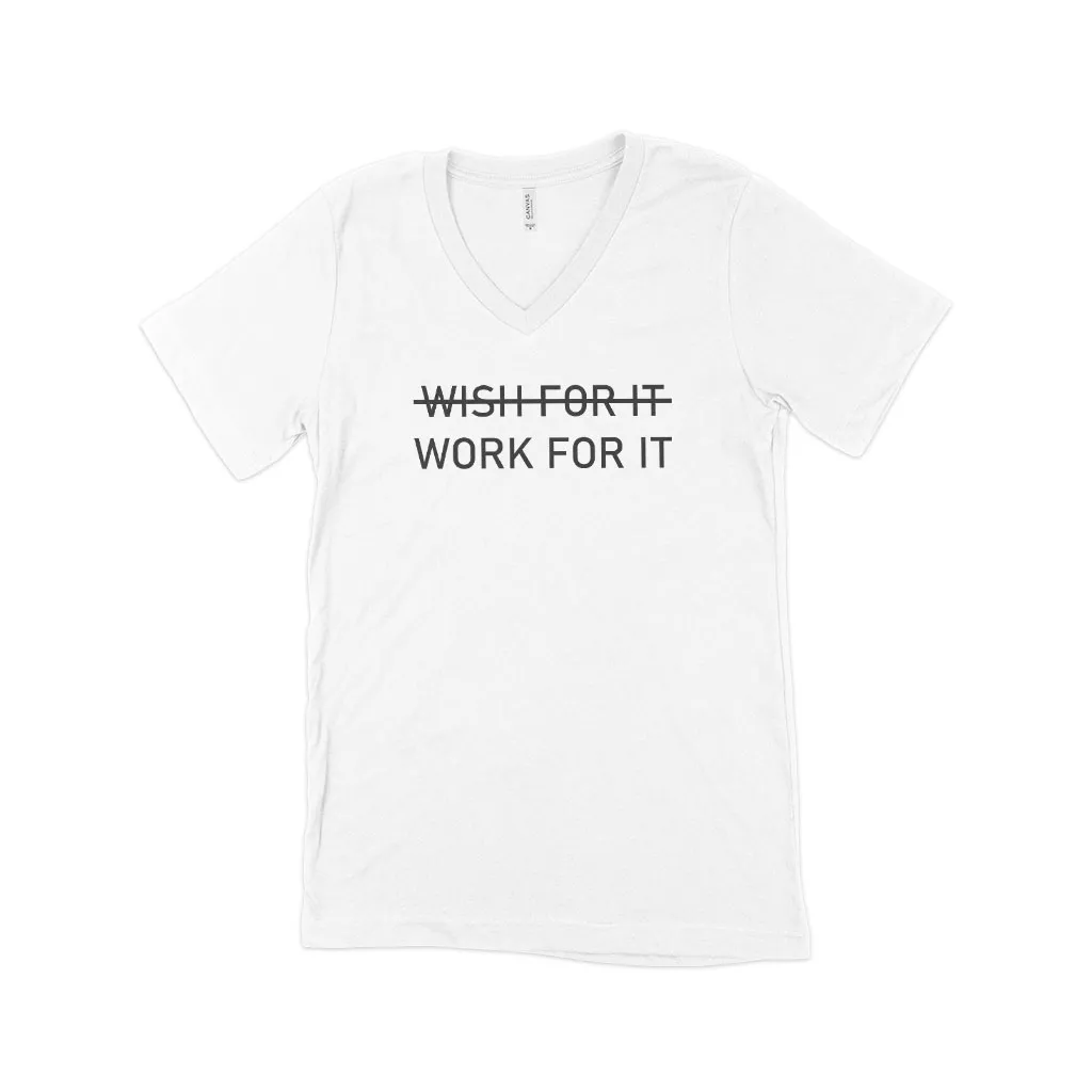 Work For It Unisex Jersey V-Neck T-Shirt  is no ordinary piece of clothing. Its seamed sides and tapered shoulders provide a retail fit for clothing that’s true to size.