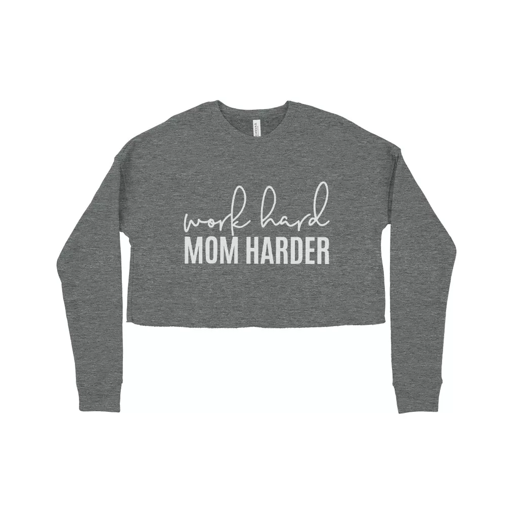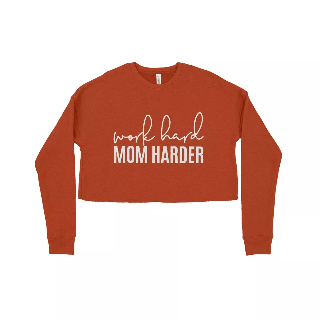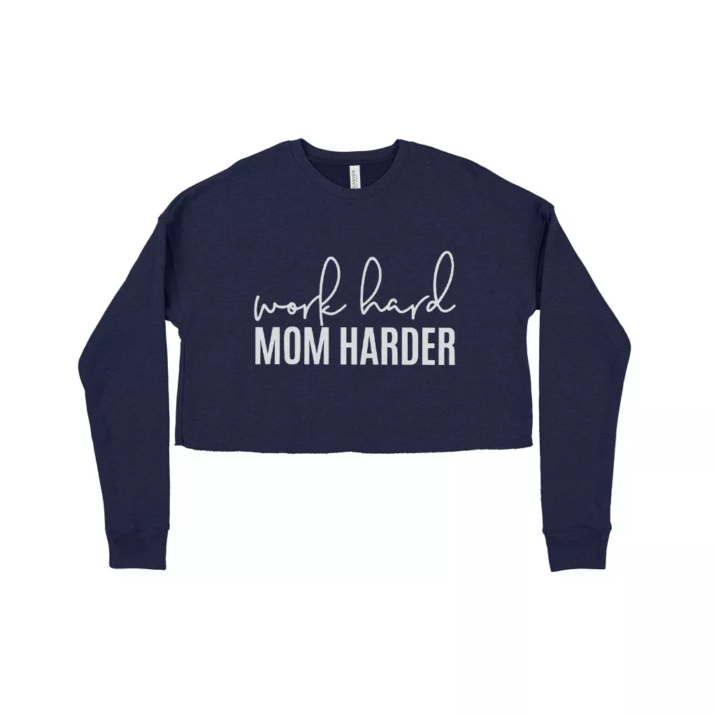 Work Hard Mom Harder Women’s Cropped Fleece Sweatshirt